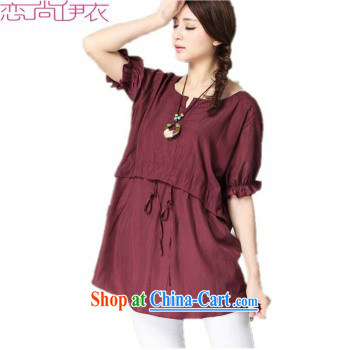 The package mail and indeed increase, female shirt simple round-collar drawcord waist high relaxed, gown T shirt literary lady larger Yi T-shirt graphics thin dark red 3 XL approximately 130 - 150 jack