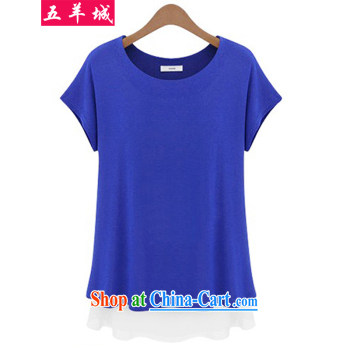 Eternal show the code women snow woven shirts thick sister 2015 summer new thick mm thick, graphics thin, the fat XL retro stamp loose T-shirt blue 4 XL