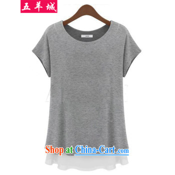 Five Rams City thick MM summer edition won the fat XL female fat people graphics thin, leave two thick sister snow woven stitching loose short-sleeved T pension 175 light gray 5 XL recommendations 170 - 180 jack
