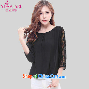 Slim LI Sau 2015 summer new, larger female minimalist round style luxury hot the hot drill lace stitching graphics thin 100 ground T pension Q 8698 black 2 XL
