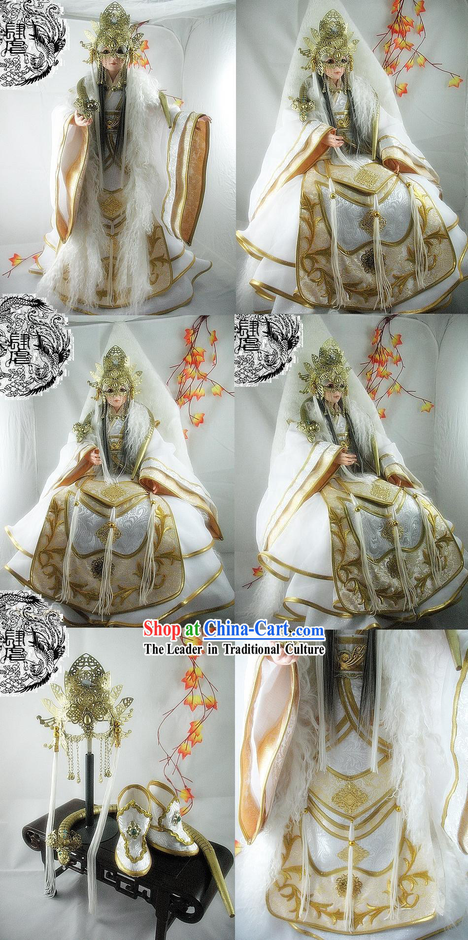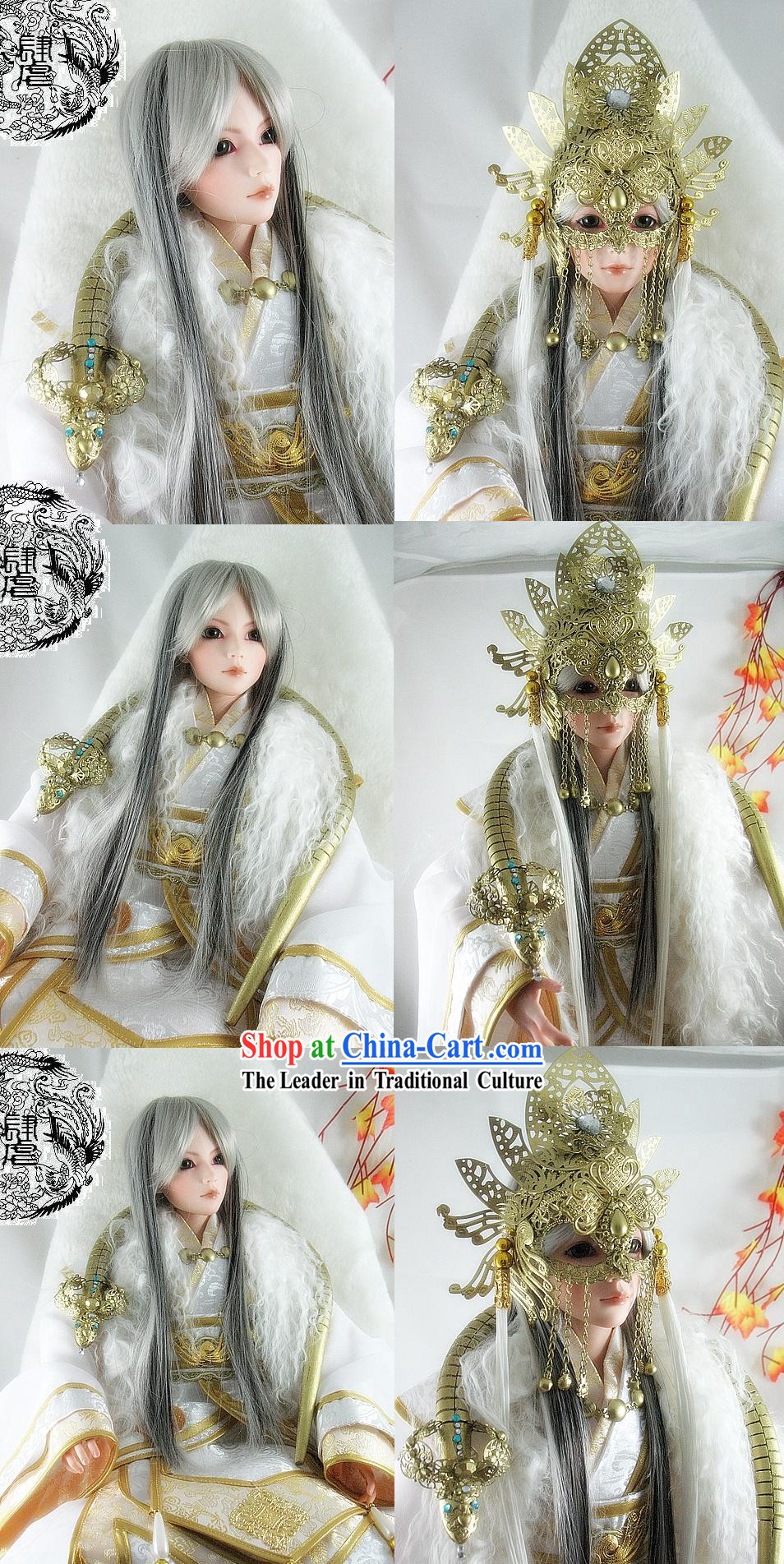 The design of this costume and mask set is exquisite, with rich details that reflect the superb craftsmanship and unique style of ancient Chinese art.
