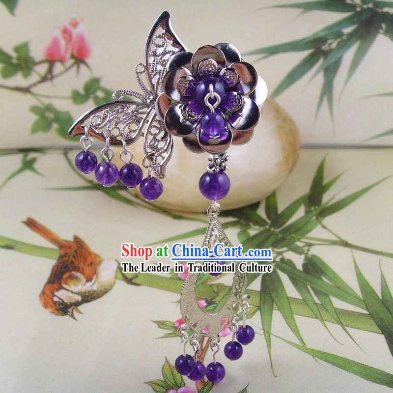 This is an ancient Chinese-style hair accessory made up of purple beads and silver flowers.