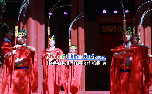 This artwork is a set of ancient Chinese imperial dance costumes designed for men.