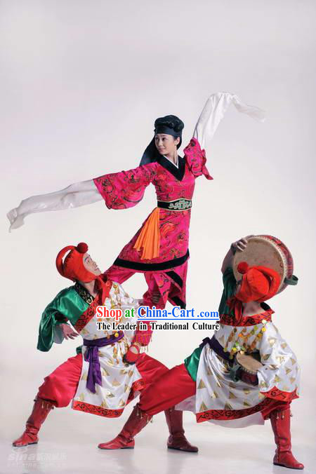 The costume is made of red and black silk, embroidered with golden patterns, which is very gorgeous.