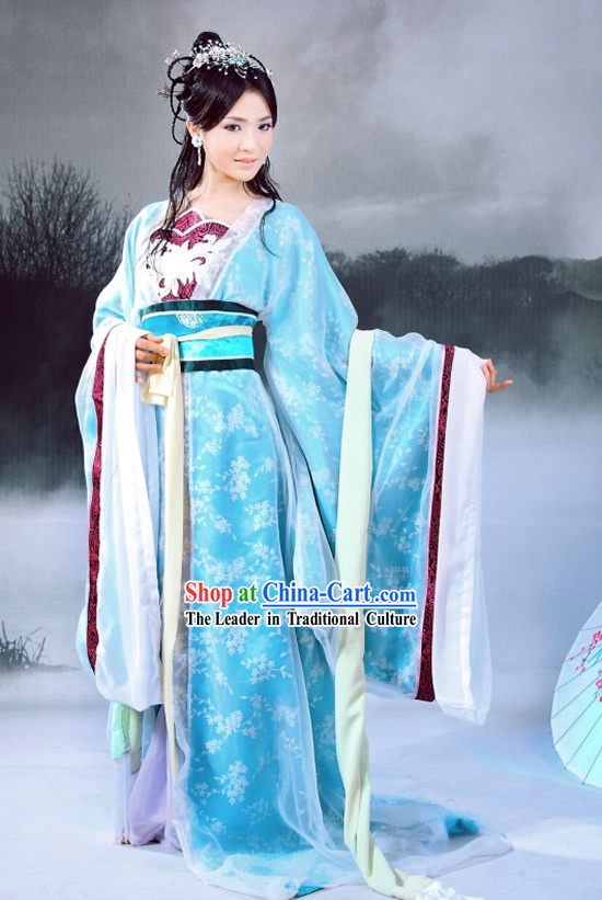 The clothing features blue and white tones, exuding an air of nobility and grace.
