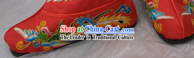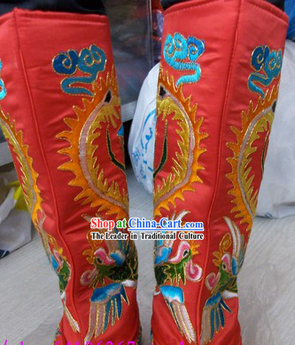 The intricate phoenix design on these boots is beautifully colored, showcasing the superb craftsmanship and unique charm of ancient Chinese art.
