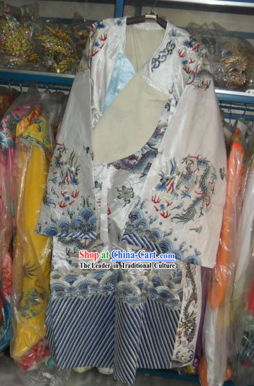 This white embroidered dragon robe is the iconic costume of Chinese Beijing Opera, representing the essence and historical significance of traditional Chinese culture.