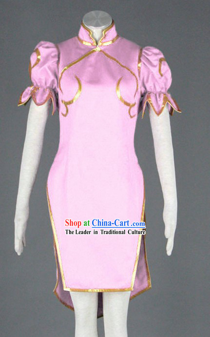 This artwork is a pink Kung Fu Cheongsam dress in traditional Chinese style, designed for women.