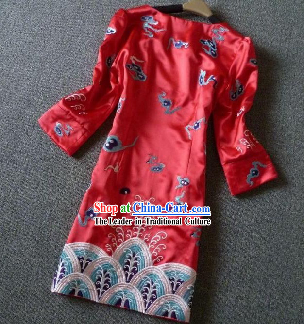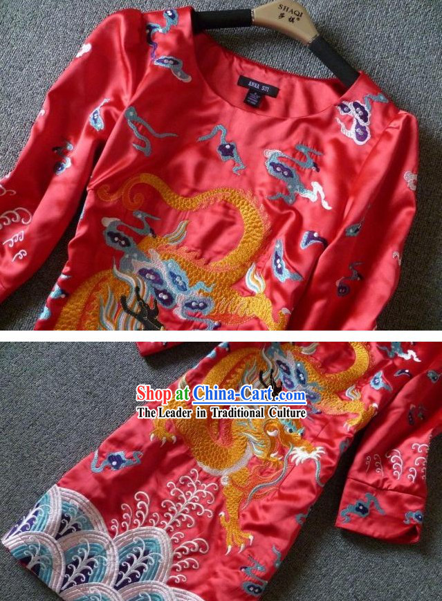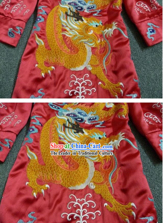This red embroidered dragon wedding dress is one of the representatives of traditional Chinese clothing.