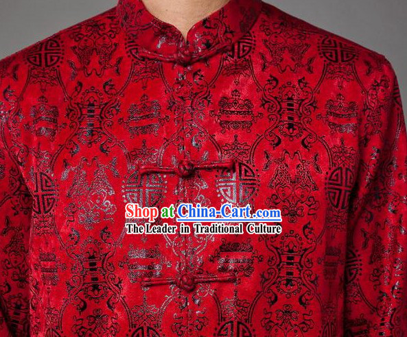 The artwork is a Chinese classical-style red wedding gown designed for men.