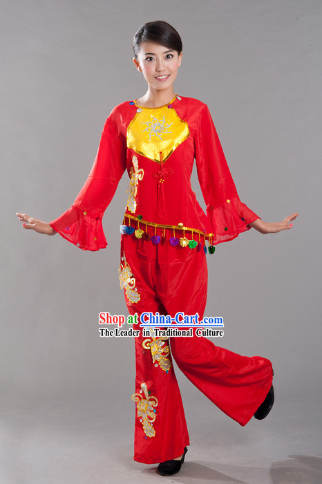 This is a Chinese fan dance costume that showcases the charm and elegance of traditional Chinese culture.