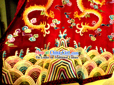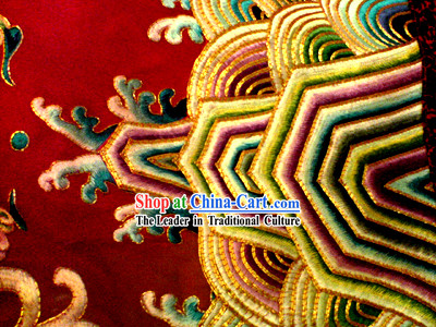 The artwork is a Chinese silk embroidery of an emperor's costume, which showcases the rich cultural and historical significance of ancient China.