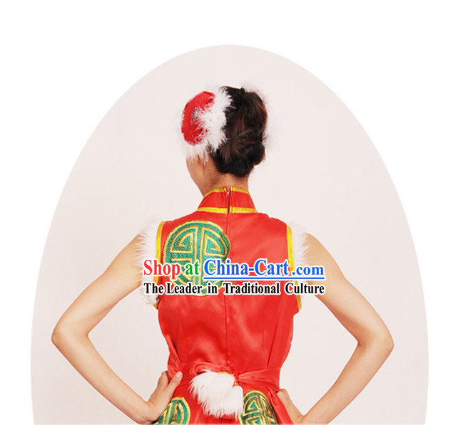 This is a Chinese New Year dance performance costume and hair accessories, which showcases the charm of traditional Chinese culture.