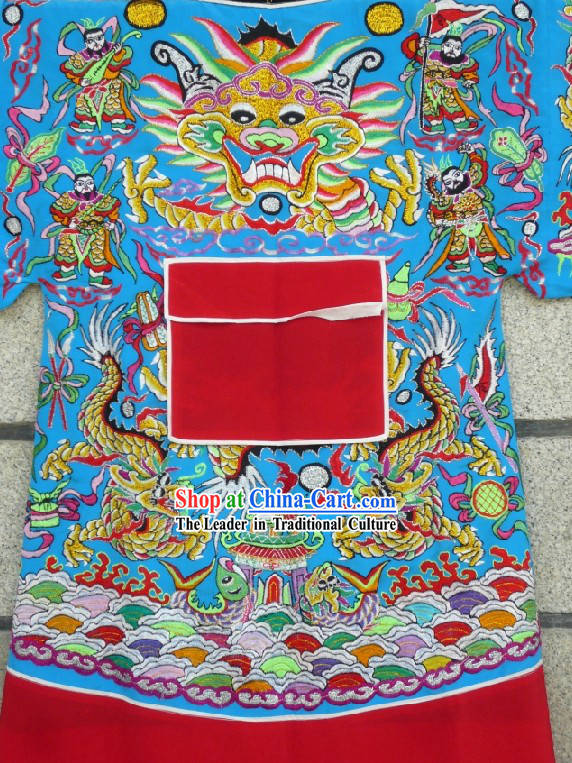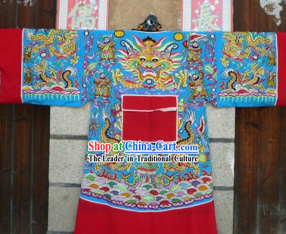 In addition, the colors of this dragon robe are also very vibrant, with the combination of red and blue giving a sense of vitality and enthusiasm.