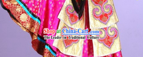 In addition to the costume, the Mongolian Female Dance Costume and Hat includes some special headdresses such as hairpins, earrings, and necklaces.