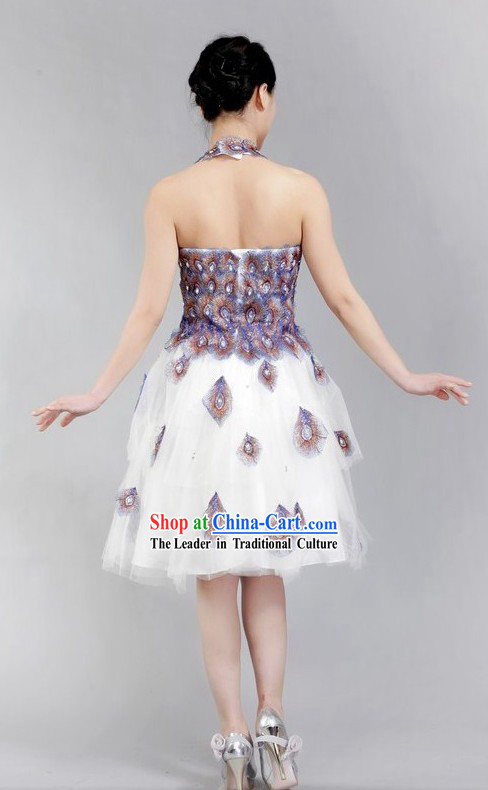 The dress employs traditional embroidery techniques to skillfully incorporate the imagery of a peacock, revealing the deep cultural heritage of China.