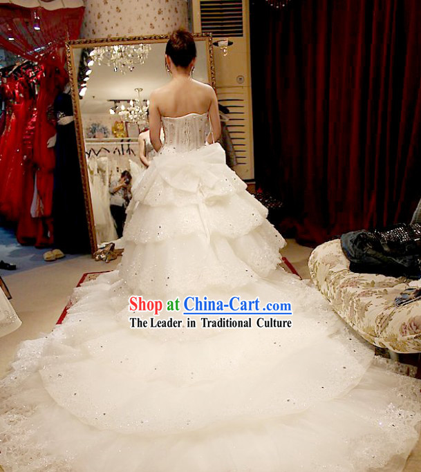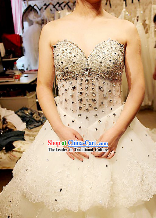This artwork is a wedding dress named "Stunning White Wedding Dress Bride Veil Complete Set for Brides".