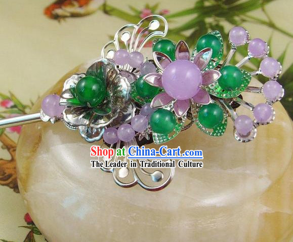 This is a traditional Chinese classical hair accessory made of silver and purple beads.