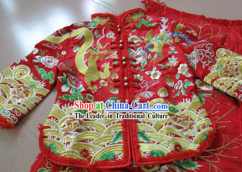 This wedding dress represents the importance of marriage and family in Chinese traditional culture, while also showcasing the charm and skill of traditional Chinese art.