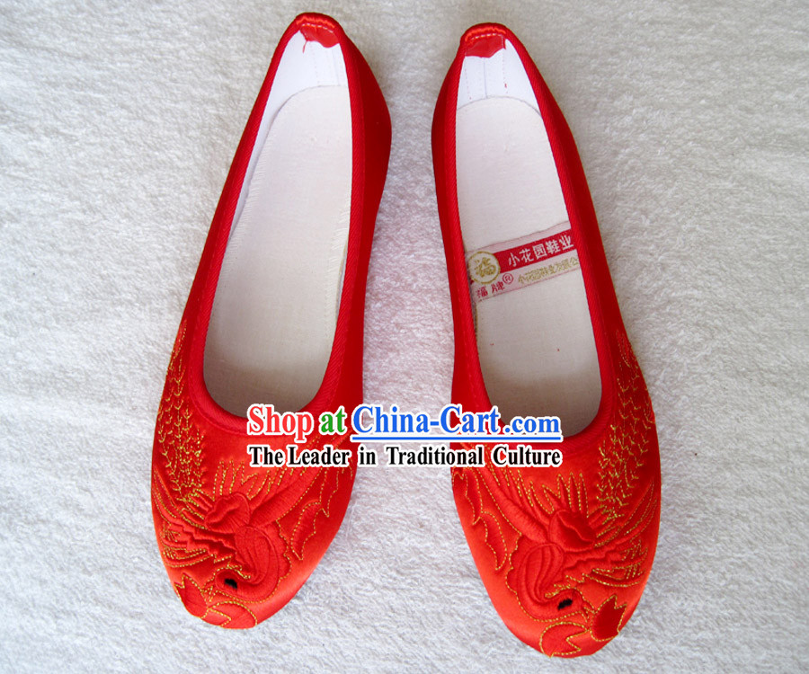 This pair of traditional red wedding Phoenix shoes is an important symbol in ancient Chinese culture.