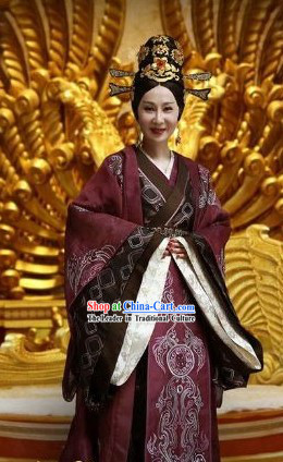 Asian Ancient Costume Chinese Han Dynasty Clothing and Hair Accessories Clothing Complete Set for Women