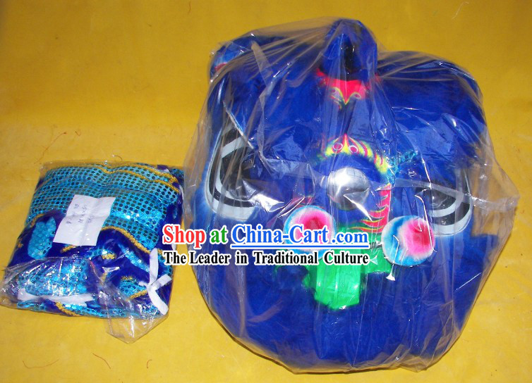503. China Handmade Royalblue Fur Lion Head Southern Lion Dance Competition Costumes Spring Festival Lion Dancing Performance Uniforms