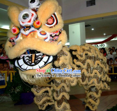 1013. Top Beige 2008 Beijing Olympic Chinese Classical 100_ Natural Long Wool Lion Dance Costumes Complete Set