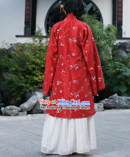 :: This artwork is an ancient Chinese Ming Dynasty red wedding dress, composed of exquisite embroidery and ornate decorations.