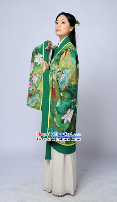 This artwork is an original design of ancient Chinese green lotus Hanfu, which combines traditional and modern elements to showcase its unique cultural charm.